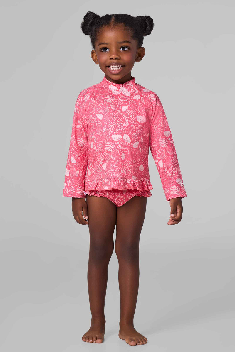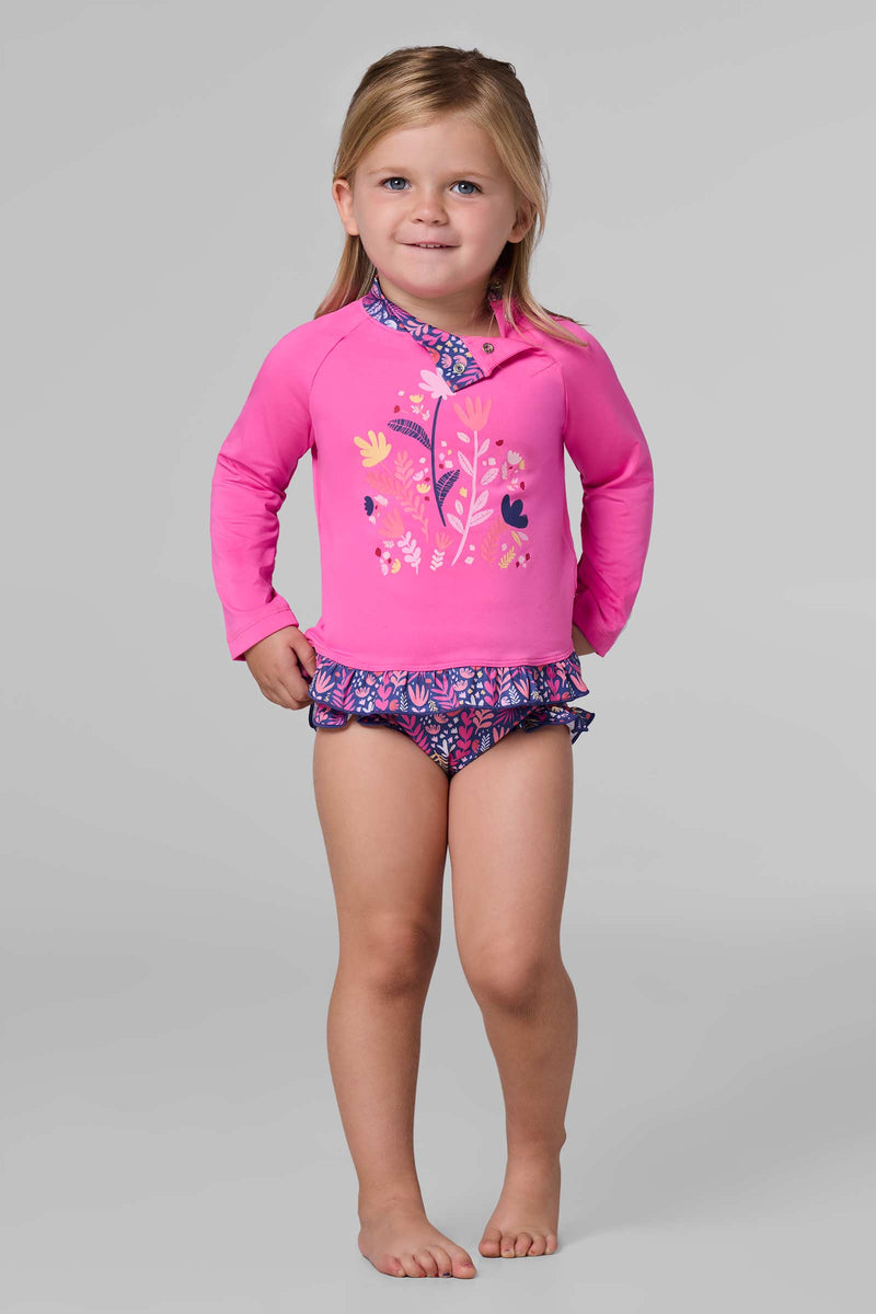 Sun safe splish, splash, protect! Just add water. Designed with mom in mind, blocking your little one from 98% of UVA/UVB rays is a breeze in this baby swimsuit! Top...