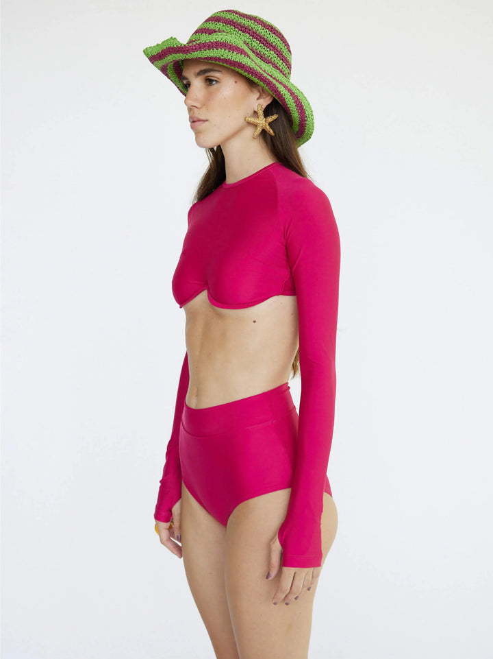 The Joana is our classic high rise bikini bottom that flatters every body. Never sacrificing fashion, this versatile style moderately covers your backside. Pair with any of our bra tops and a long sleeve rash guard for perfect coverage.