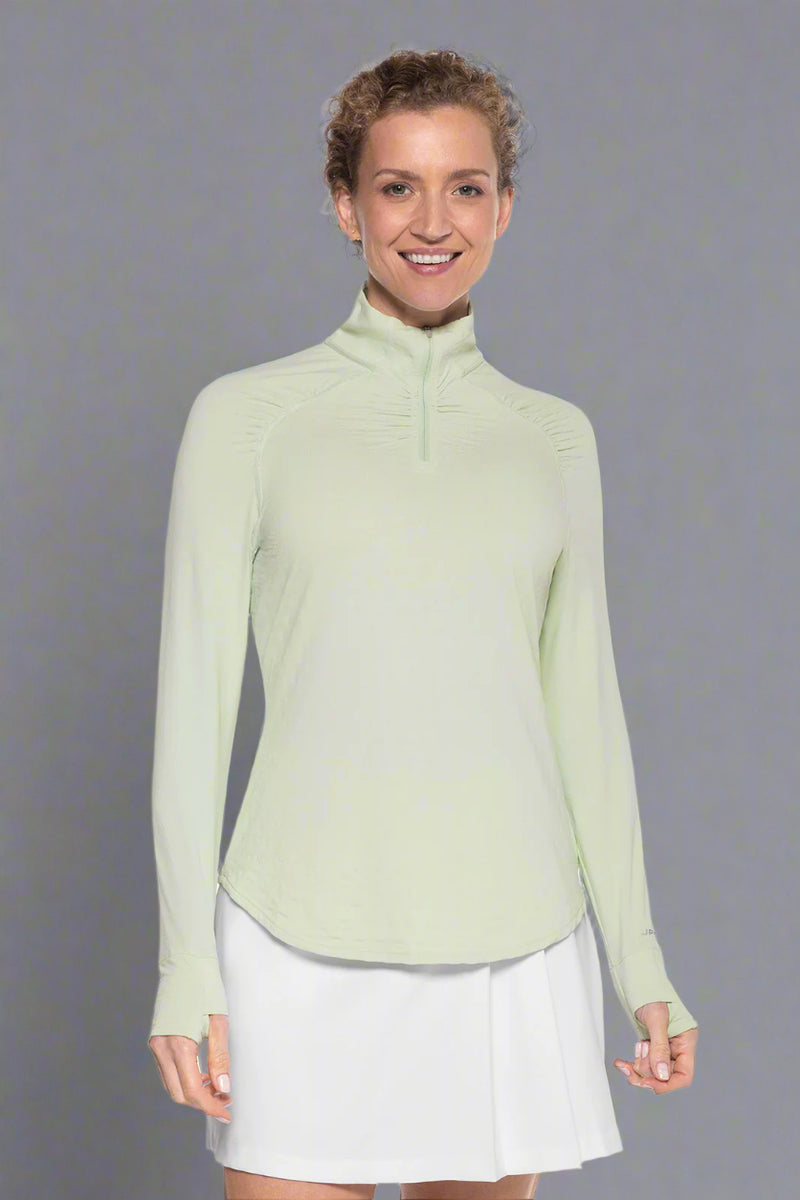 The Arabella Quarter-Zip features the beautiful, light jacquard knit diamond texture of our Active Diamond™ fabric. The soft detailing of the stitching amplifies the flattering ruching on the shoulders and...