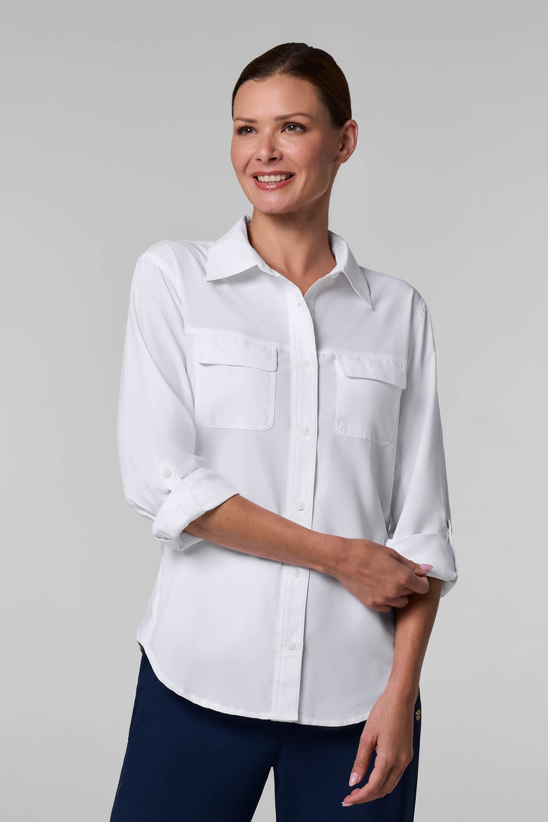 The Aricia Sun Shirt is the ultimate lightweight travel shirt, designed for comfort, breathability, and sun protection on the go. It features a front pocket, roll-up sleeves, and strategically placed...