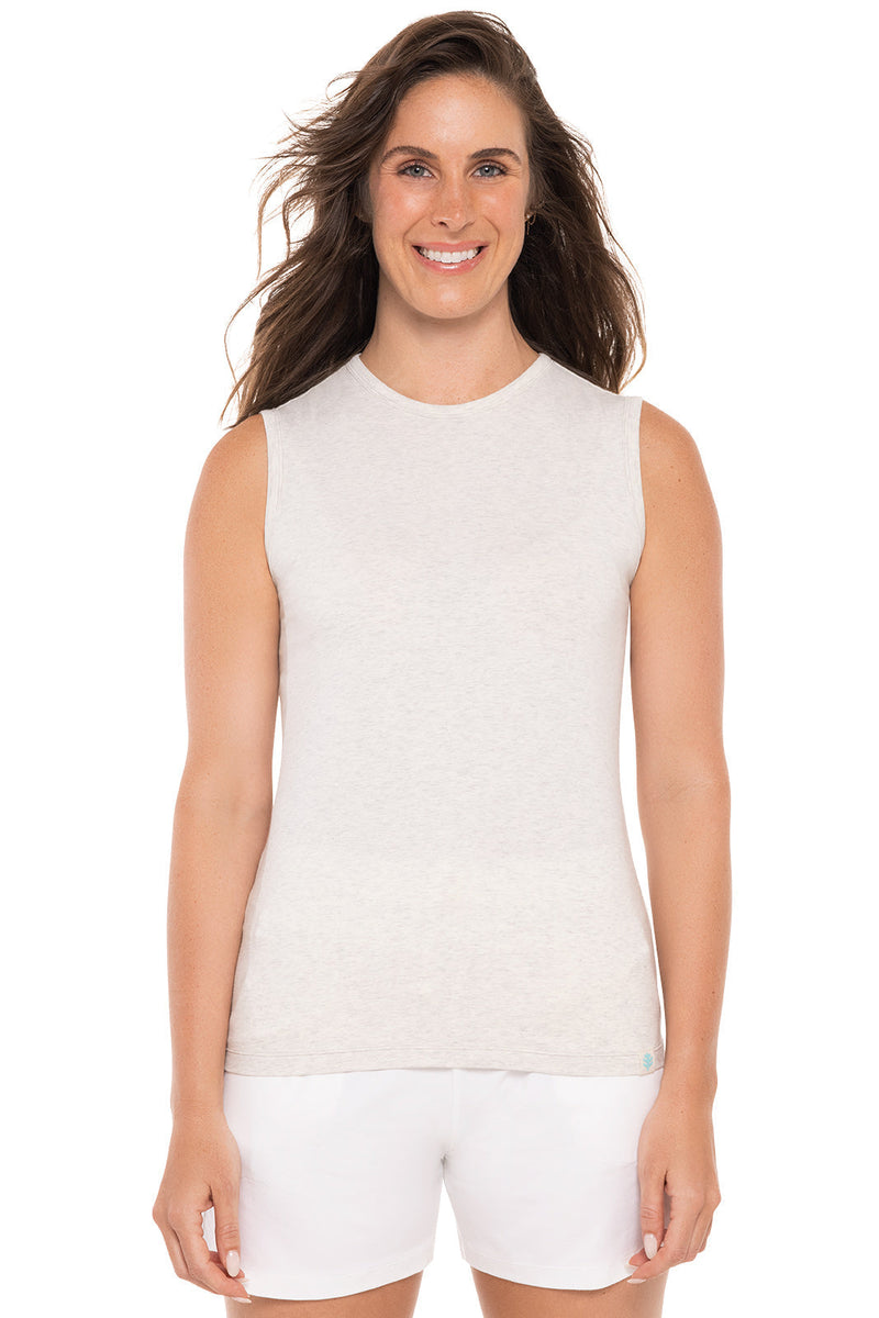 Our sporty-soft Lumaleo High Neck Tank Top is the perfect essential for layering under your favorite hoodies, sun wraps, or shrugs. With a higher neckline for added coverage, this breathable...