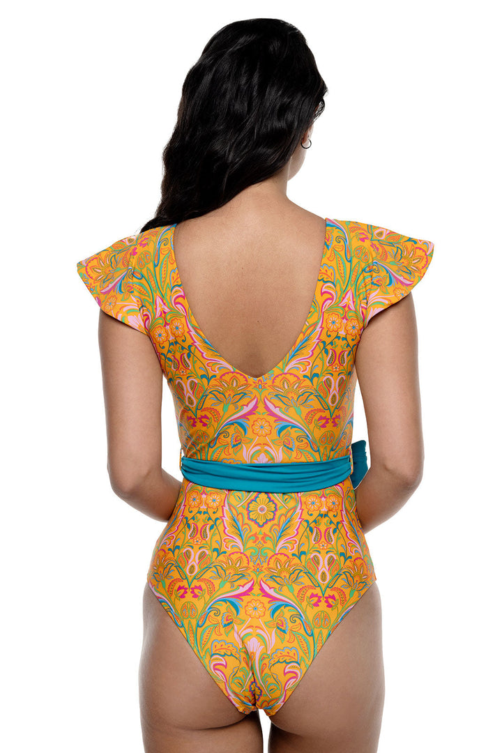 Women's Coconut Grove Flutter Sleeve Swimsuit | Apricot Crush MOSAIC GARDEN