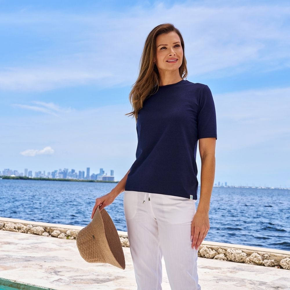 Our premium ZnO™ fabric delivers exceptional softness, lasting comfort, and advanced UPF 50+ sun protection. Infused with mineral-based UV protection, it is made from a unique blend of cotton and bamboo fibers engineered for breathability and everyday ease. It’s gentle on sensitive skin and ideal for all-day wear. Lightweight, smooth, and 4-way stretch, this fabric is made to keep you feeling cool, relaxed, and protected wherever the day takes you. As the world leader in UPF 50+ clothing, we offer apparel that blocks 98% of UVA and UVB rays, combining safety and wellness you can trust.