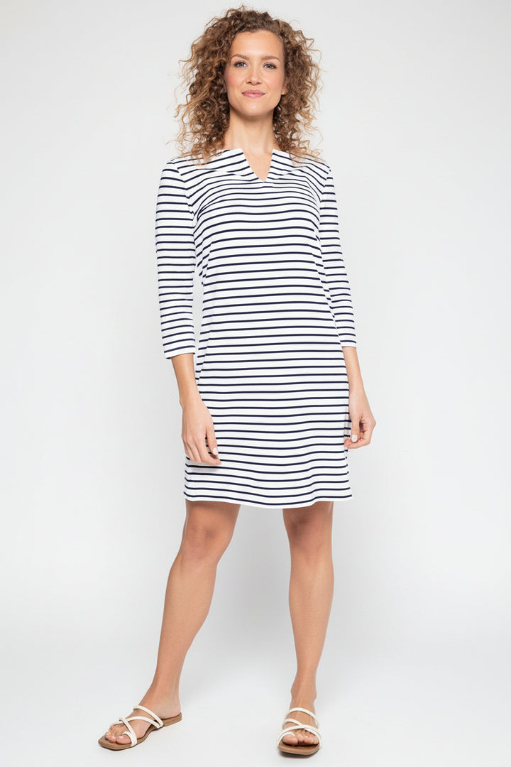 Tunic Dress with 3/4 Sleeve | White/Navy Stripe