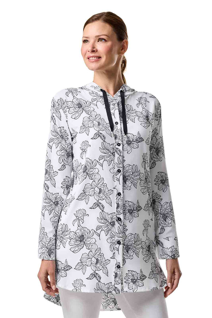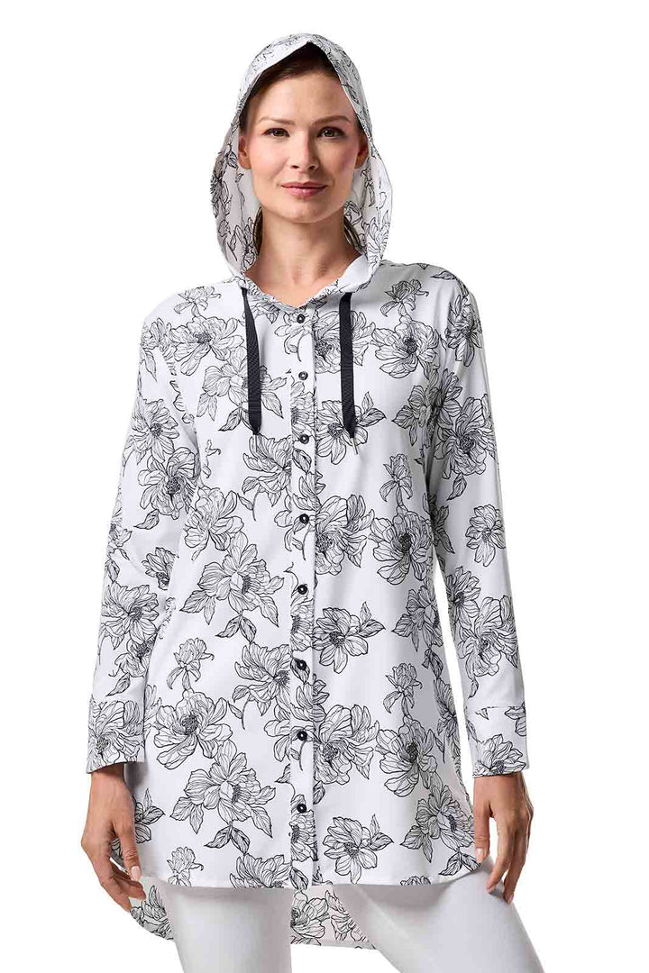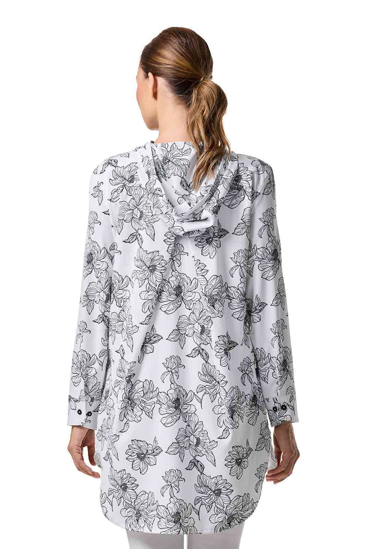 Women's Beach Long Sleeve Shirt | White/Black Perfect Peony