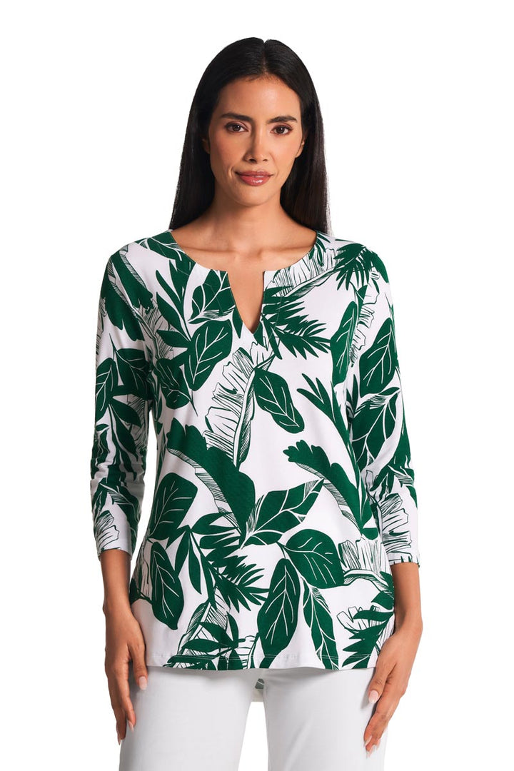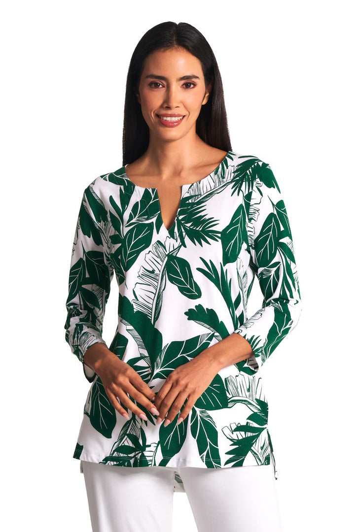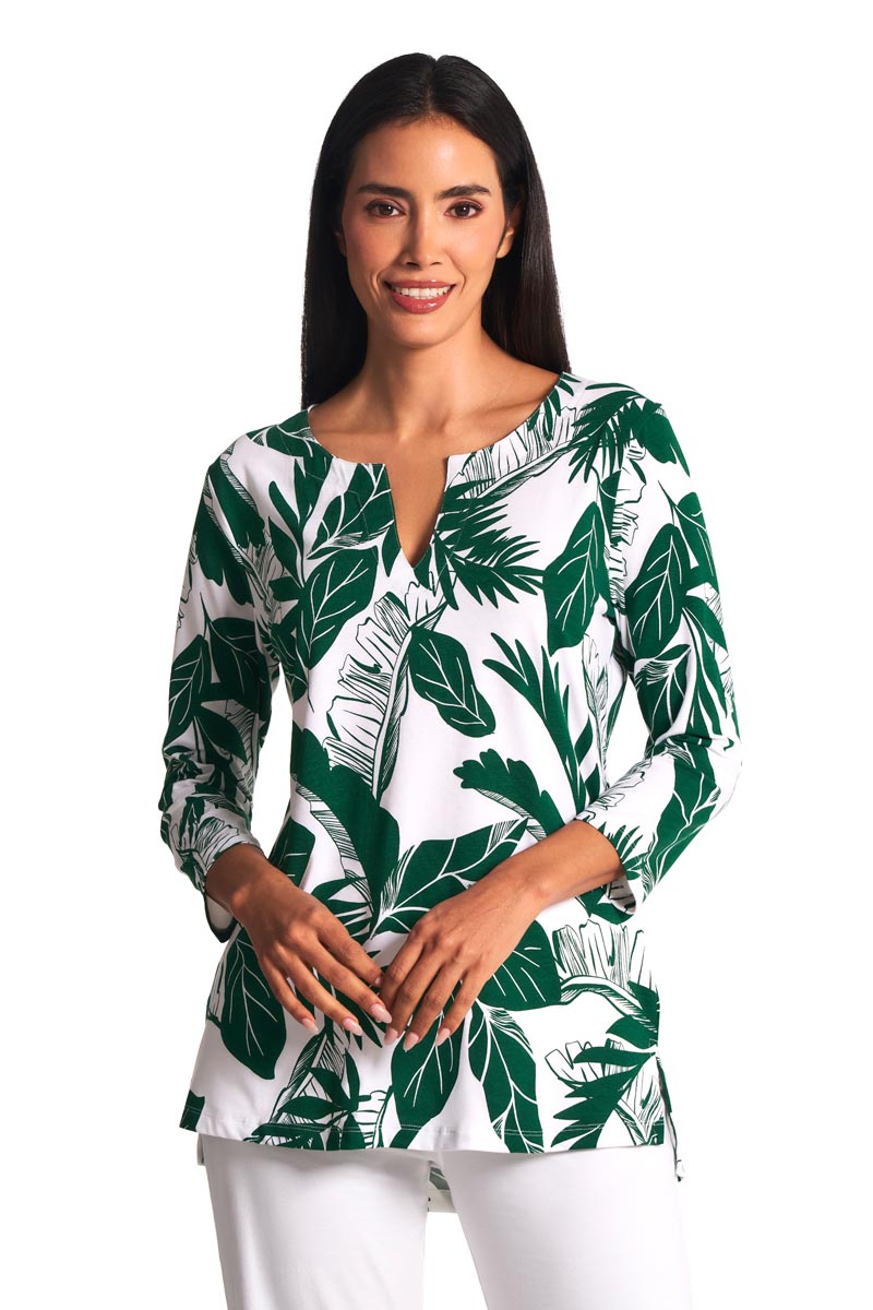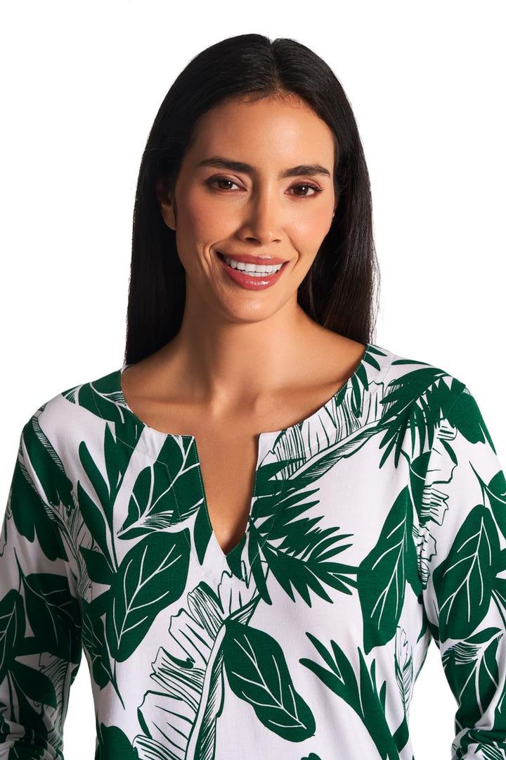 Women's Tunic Top with Long Sleeves | Eden Green Palm Paradise