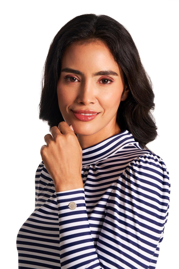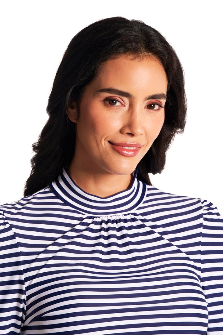 Women's Puff Sleeve Swim Top | White/Navy Stripe